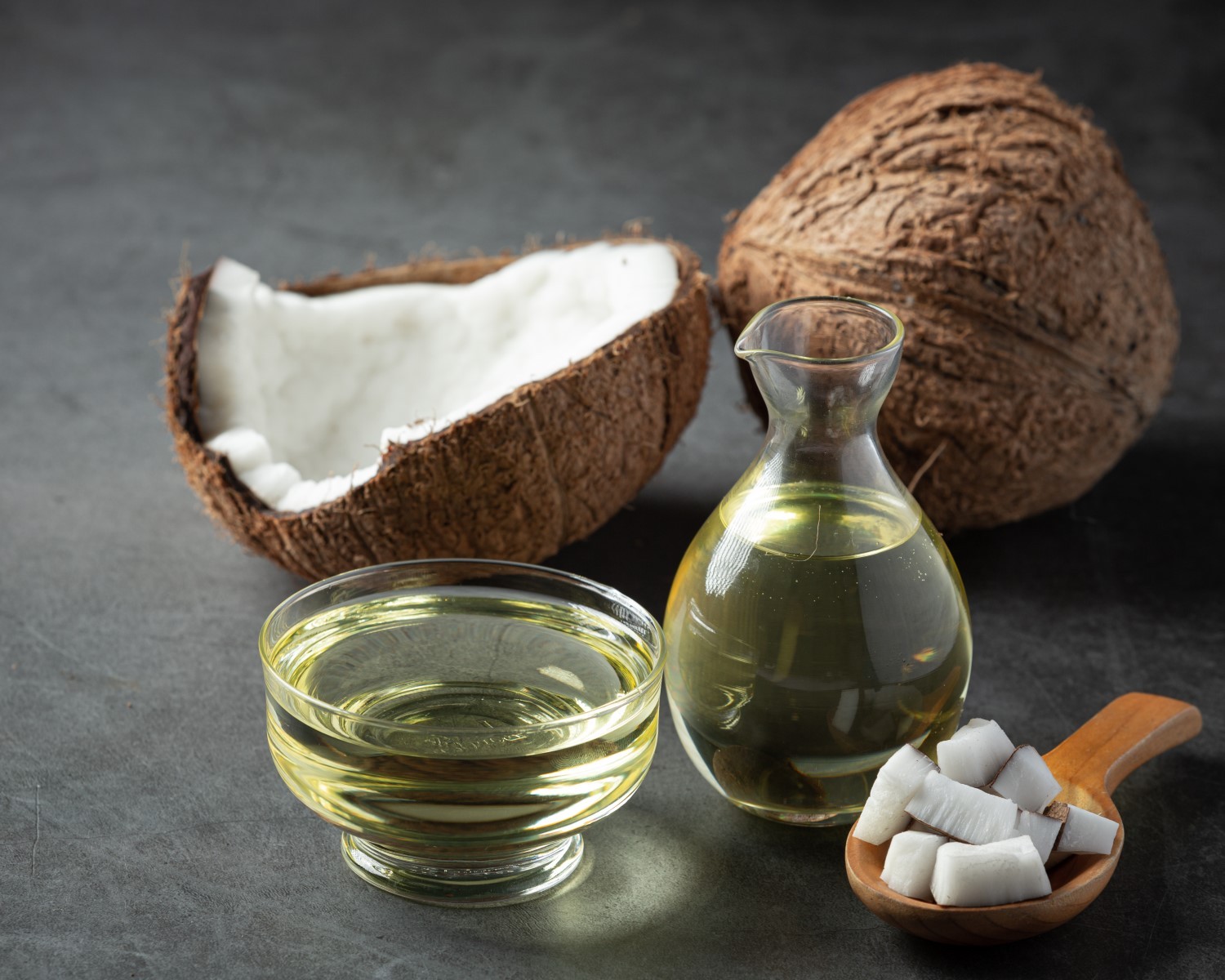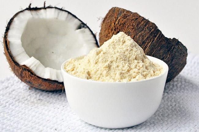 Mixer les noisettes, le sirop d’agave, l’huile de coco fondue et la farine de coco/amande dans un robot lame en S.