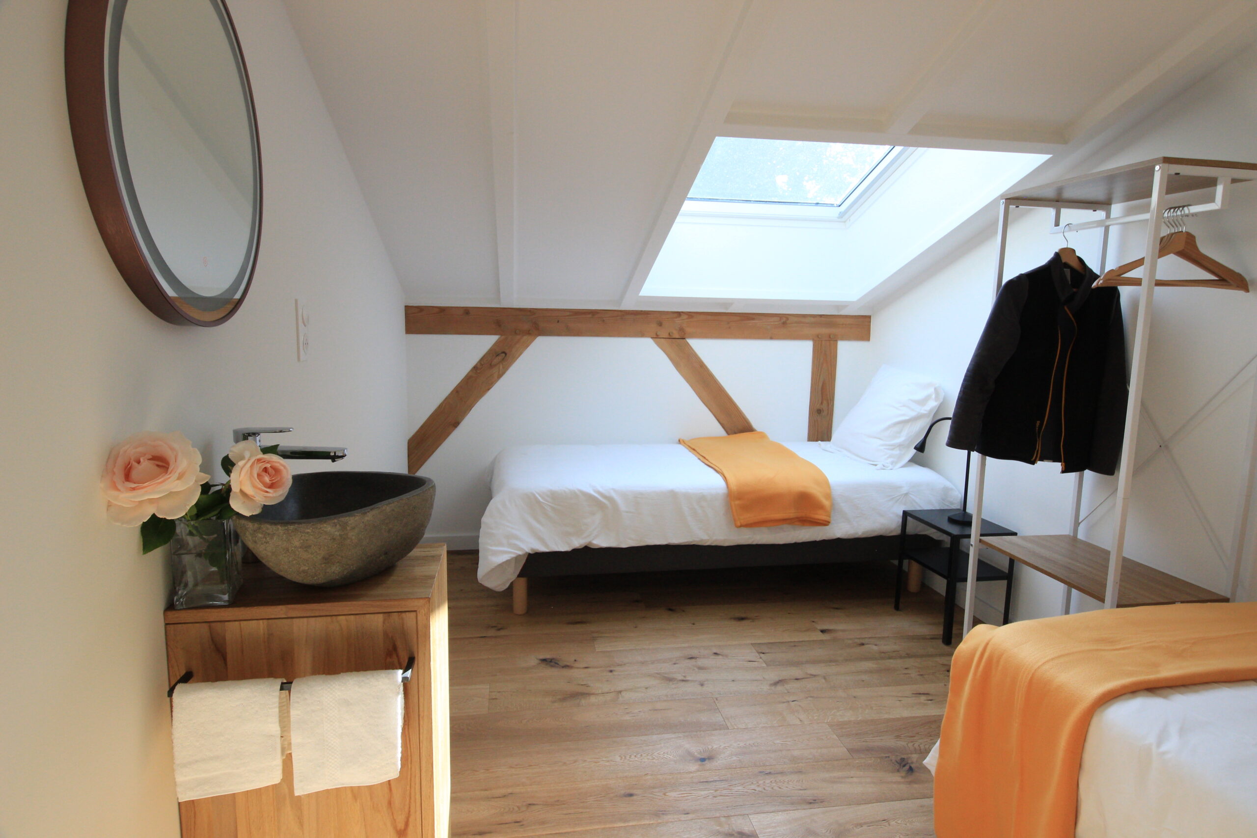 5 chambres, chacune équipée de 2 lits simples (90 cm)